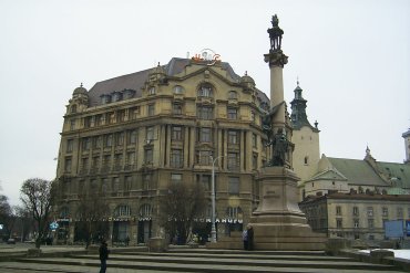 The first pictures below are from Lviv (in Russian, Lvov), the principle city of Western Ukraine. The two girls in the left picture are Oksana and Olga, two of the three English-speaking people I met at a student party I ended up at on the night before Valentine's Day. Poor Olga tried to teach me to slow-dance. The right picture is a monument to Adam Mickiewicz, the national poet of Poland, and apparently also still held in high esteem in Western Ukraine.
